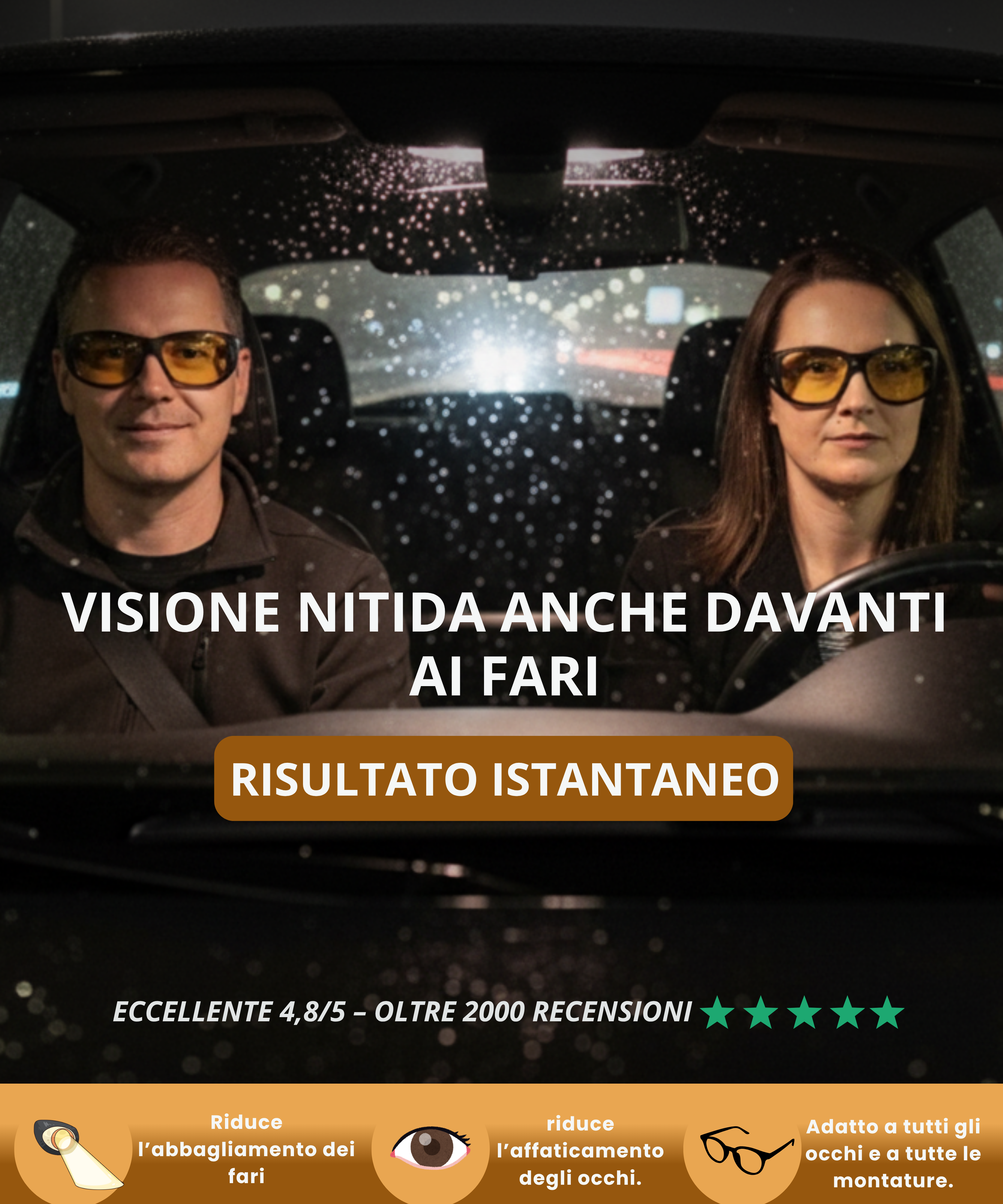 Non possiamo garantire la qualità, la protezione anti-abbagliamento né la sicurezza visiva di prodotti simili acquistati altrove (marketplace, rivenditori non autorizzati). Per essere certo di ricevere un prodotto conforme ed efficace, ordina esclusivamente qui, sul nostro sito ufficiale.
