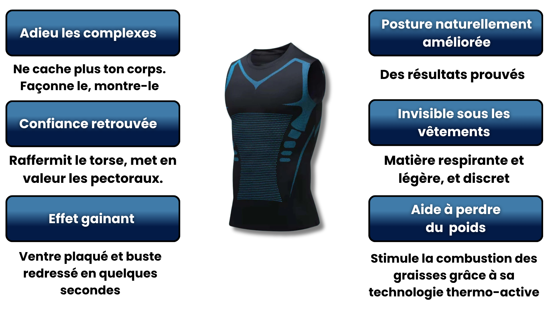 Avant, je rentrais toujours le ventre. Maintenant avec ce débardeur, je me tiens droit naturellement et mon torse ressort. Invisible sous mes vêtements, mais l'effet est dingue. Ma copine m'a demandé si j'avais perdu du poids !
