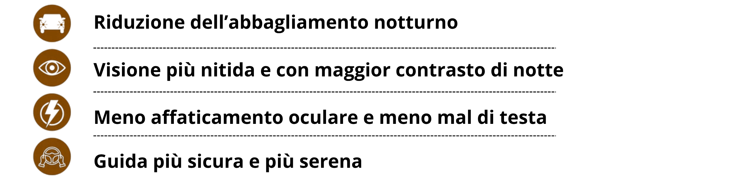 Le lenti migliorano la percezione dei rilievi, dei segnali stradali e degli ostacoli, rendendo la guida più precisa e sicura, anche al buio o in caso di maltempo.